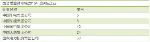 国资委新近披露2015年度和2013-2015年任期业绩考核结果。在2015年度A级企业中,华电位列央企第5名,居五大发电之首。