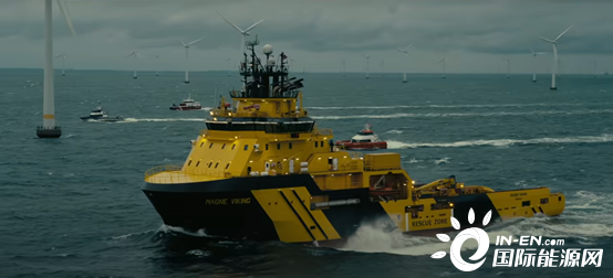 在《信条》中,海上风电也有惊鸿一瞥。影片的制作费用超过2亿美元,这也许是如此体量的好莱坞商业巨制首次在大银幕上展现海上风电的震撼场景。例如电影第一幕结束,男主角被带入海上风电场: