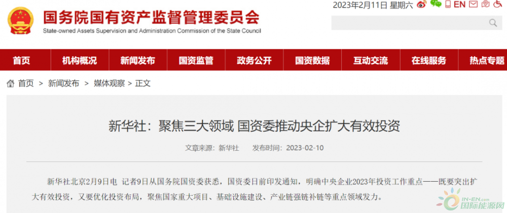 近日国务院、国资委印发《关于做好2023年中央企业投资管理 进一步扩大有效投资有关事项的通知》,明确中央企业2023年投资工作重点,在能源投资方面: