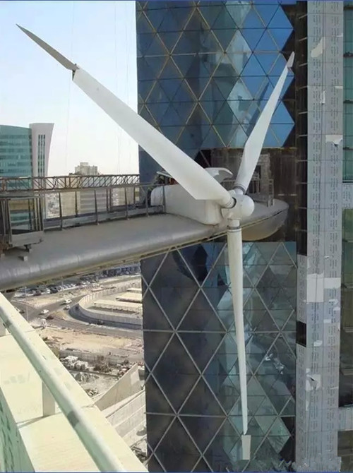 巴林世贸中心主体包括两座50层的双子塔,底部是一个三层的基座,其两座三角形的大厦高度达240米。在两座大厦之间设置了水平支持的3座直径29米的风力涡轮。风帆一样的楼体形成两座楼之前的海风对流,加快了风速。风电机组预计能够支持大厦所需用电的11%-15%。