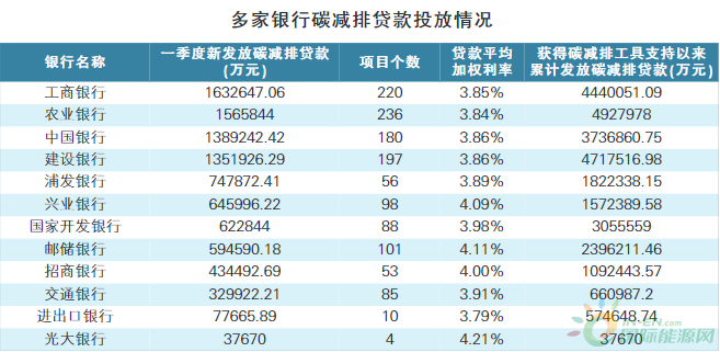 银行在碳减排领域的争夺战已经打响。近日,多家银行披露一季度碳减排贷款投放情况,其中,工农中建四家国有大行投放均超百亿元,主要投向清洁能源、节能环保领域。