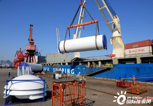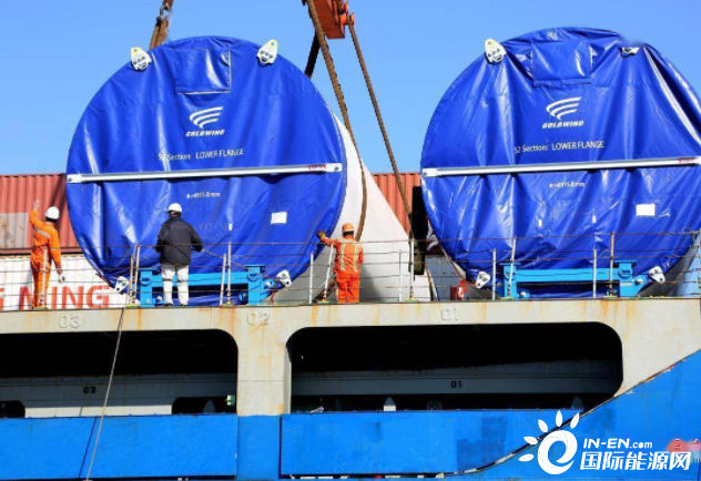 当日,由国内生产的"金风"风电机组设备在江苏连云港港东方公司码头62号泊位装船出口,启航运往乌克兰,这批出口的风电设备一共65套。