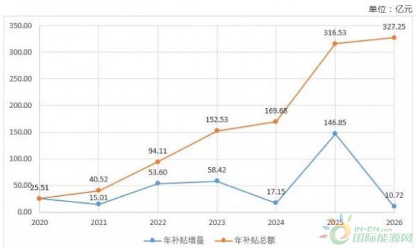 图4 2018年核准的广东省海上风电项目投产年补贴增量及补贴总额
