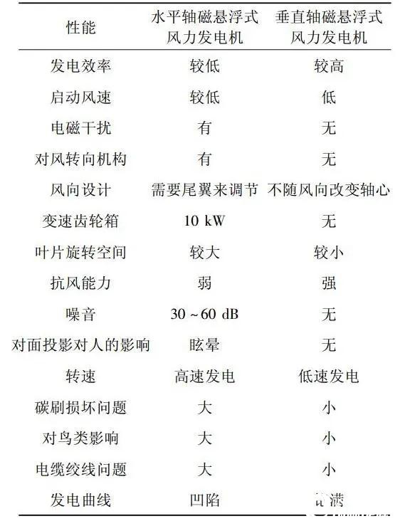 表1 水平轴和垂直轴磁悬浮风力发电机的对比