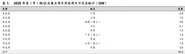 2019 年2月下旬,福建、宁夏、甘肃、河北、山西五省(市)陆续发布 2020 年重点项目清单,华能集团、三峡集团以及国电投也纷纷启动在青海、广东、江苏、内蒙等地的重大工程复产开工,其中涉及风电项目容量超过 18GW。同时辽宁省还发函组织低价风电项目的申报,成为全国首个风电核准电价低于火电价格的省份,且总额度高达 2.4GW。