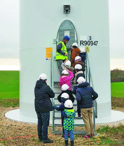“为什么风机有三个叶片”“能源转型是什么意思”“风机发电跟别的电一样吗”?这些问题来自家住法国夏尔蒙风电场附近阿尔西斯—苏—奥博镇(Arcis sur Aube)的小学生。