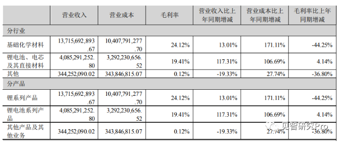 与一般的锂盐厂商不同,投入锂电上下游一体化的赣锋锂业,两大业务锂系列产品业务和锂电池系列产品业务分别包括了锂电产业的上游和中游。