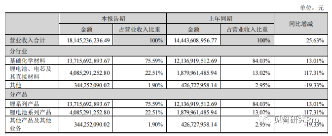 但在此压力下,赣锋锂业的锂电池系列产品业务却保持正增长。