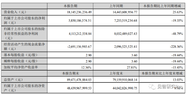 其中,营业收入87.07亿元,同比降低4%,环比下滑7.75%;归母净利润只有34.54亿元,同比下滑7.3%。