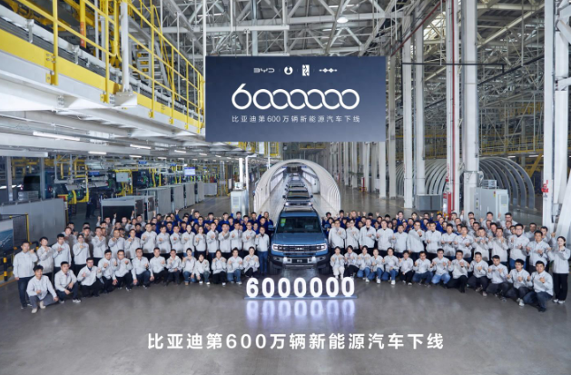 11月24日消息,比亚迪官宣,第 600万辆新能源汽车下线,是全球首个达成这一里程碑的车企。