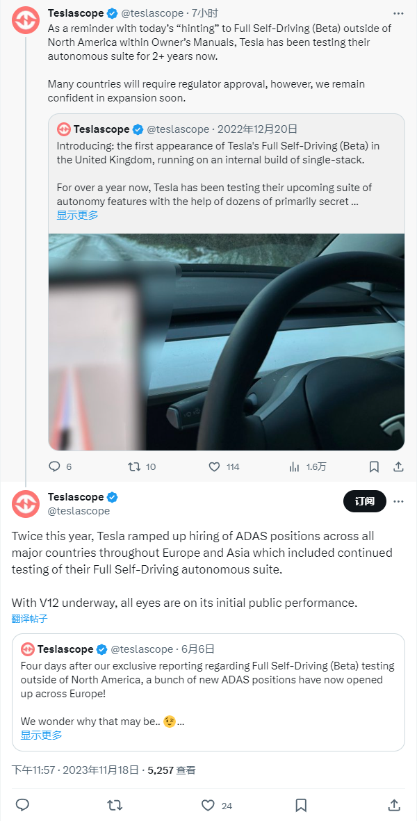 尽管特斯拉多年来一直在北美以外地区进行测试,但 Teslascope 指出,FSD Beta 仍然需要在许多国家获得监管批准。