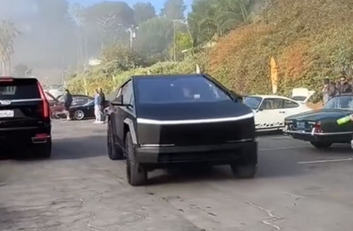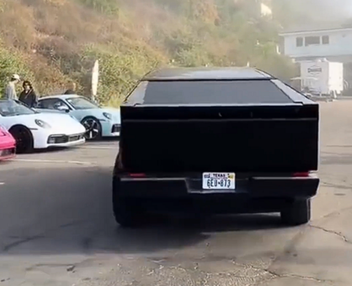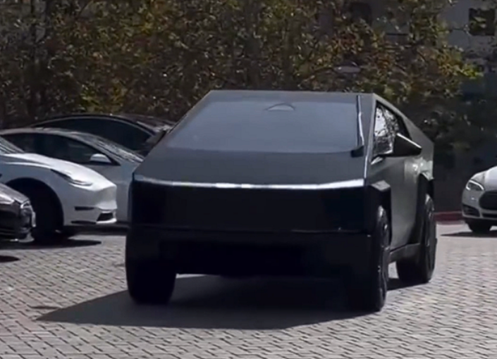 从实拍看,哑光黑的Cybertruck质感十足,即便是在大太阳光下,也没有任何反光,缓缓开过来的时候,像是一个移动的黑色怪物,十分唬人又吸睛。