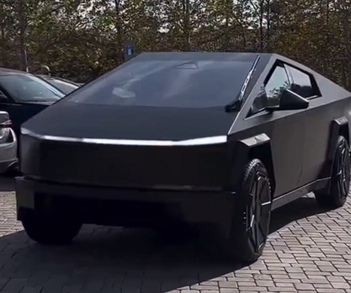 近日,有海外用户拍到了一款特殊配色的Cybertruck,之前出现的实车,都是不锈钢车身,明晃晃的,而此次展示的则为涂装了哑光黑版本,相比于明亮版,它无疑更加具有辨识度。