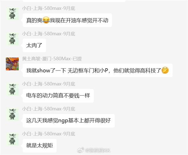 这不,汽车博主“张扛扛KK”发布了群聊中一新晋电动车主的一周使用体验,从备注看,该群友提的是小鹏G6 580 Max版,9月底到的车。