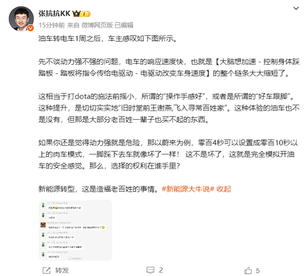 他称自己开电动车感觉“真的爽”,动力简直不要钱一样,再开油车就感觉开不动了一样,太肉了,同时他还表示小鹏的NGP辅助驾驶功能很好用,开得很好,“就是太规矩”。