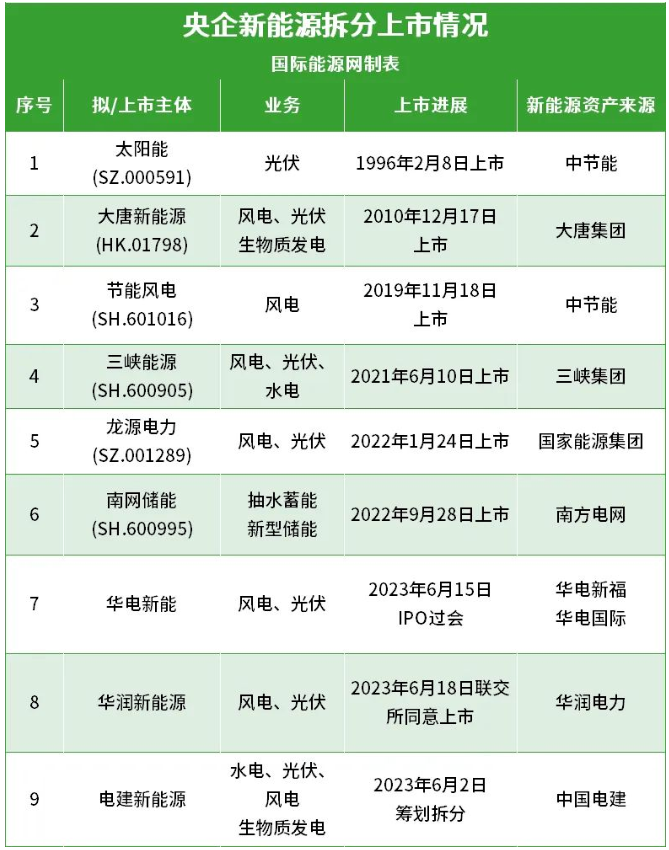 今年6月2日,中国电建也宣布,拟将旗下新能源板块分拆上市。中国电建表示,根据公司规划,未来三年间中国电建新增装机规模庞大,资本开支需求紧迫。电建新能源独立上市后,受益于资本市场对新能源运营板块的持续关注。
