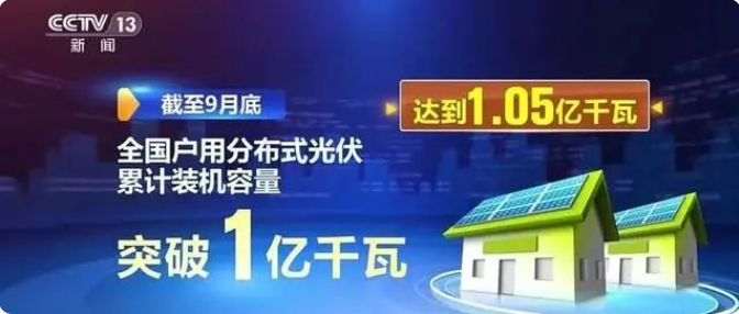 截至今年九月,全国户用光伏累计装机容量突破1亿千瓦,达到1.05亿千瓦。今年前9个月,户用光伏新增装机已经达到3297.7万千瓦,约占分布式光伏新增装机总量的一半,超过全国光伏新增总装机的四分之一。