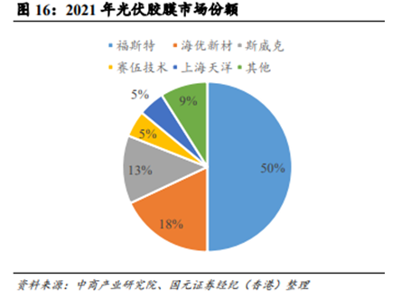图1:2021年光伏胶膜市场份额,来源:中商产业研究院,国元证券经纪(香港)
