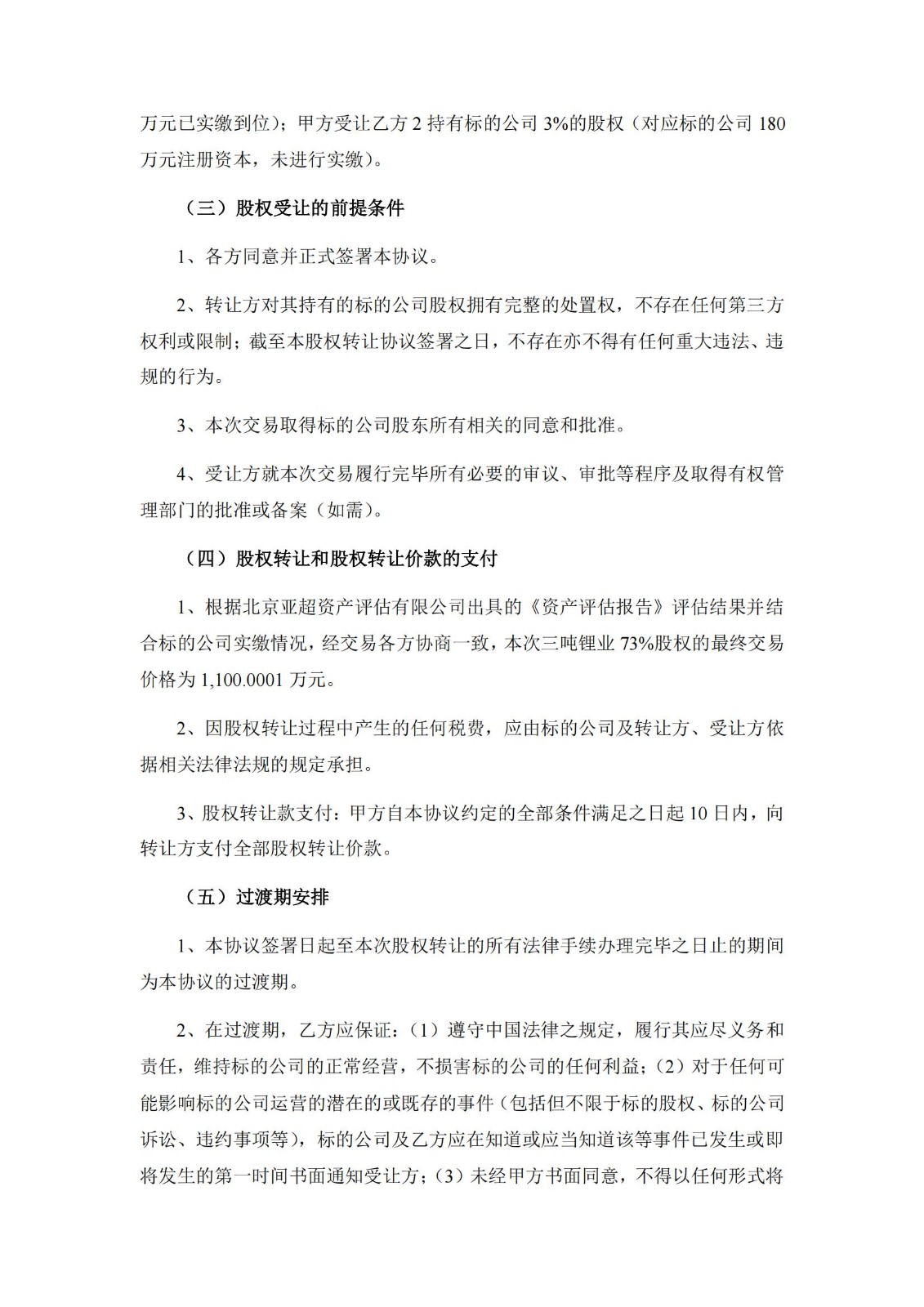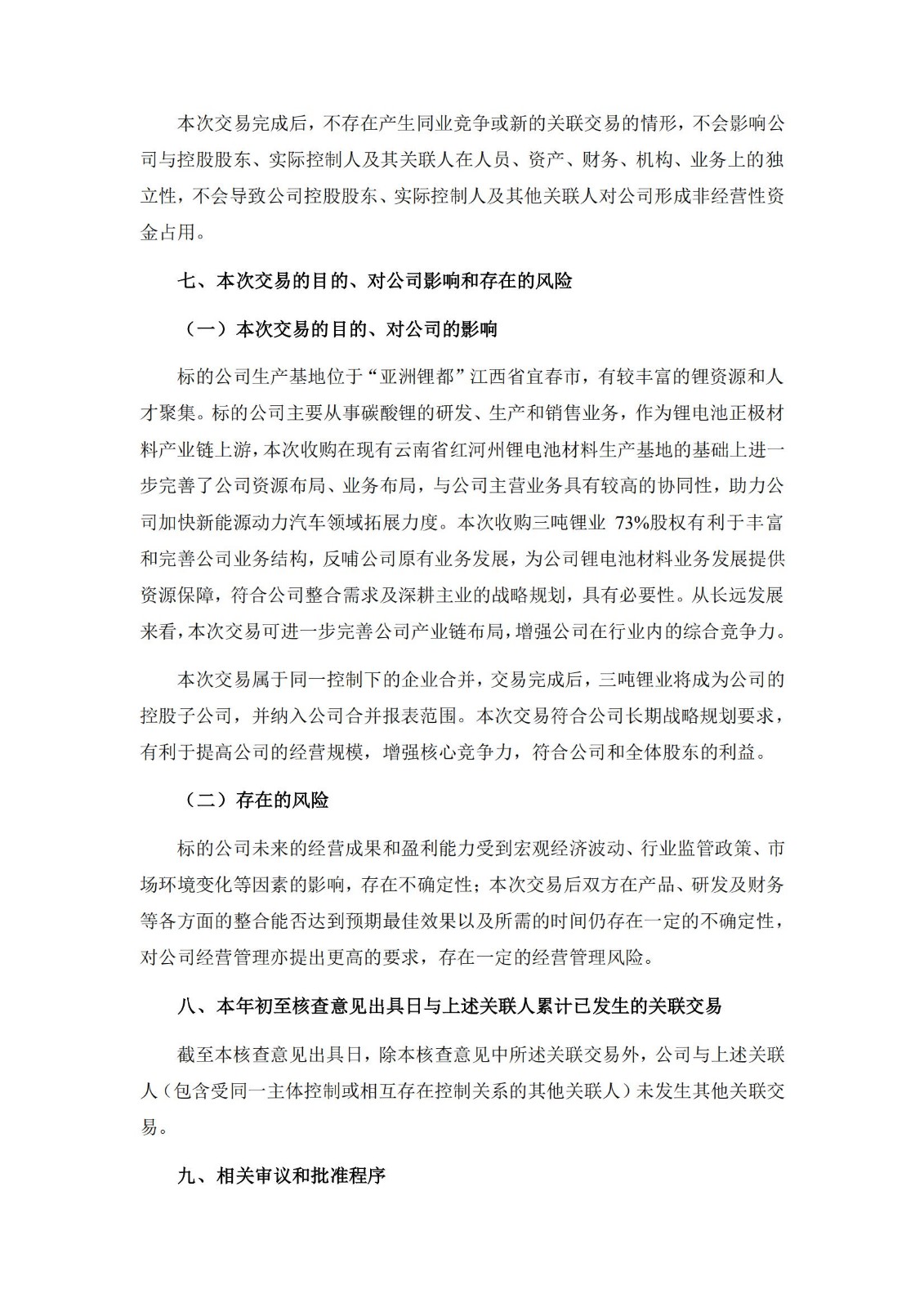 三吨锂业生产基地位于“亚洲锂都”江西省宜春市,有较丰富的锂资源和人才聚集。三吨锂业主要从事碳酸锂的研发、生产和销售业务,作为锂电池正极材料产业链上游,本次收购在现有云南省红河州锂电池材料生产基地的基础上进一步完善了公司资源布局、业务布局,与公司主营业务具有较高的协同性,助力公司加快新能源动力汽车领域拓展力度。
