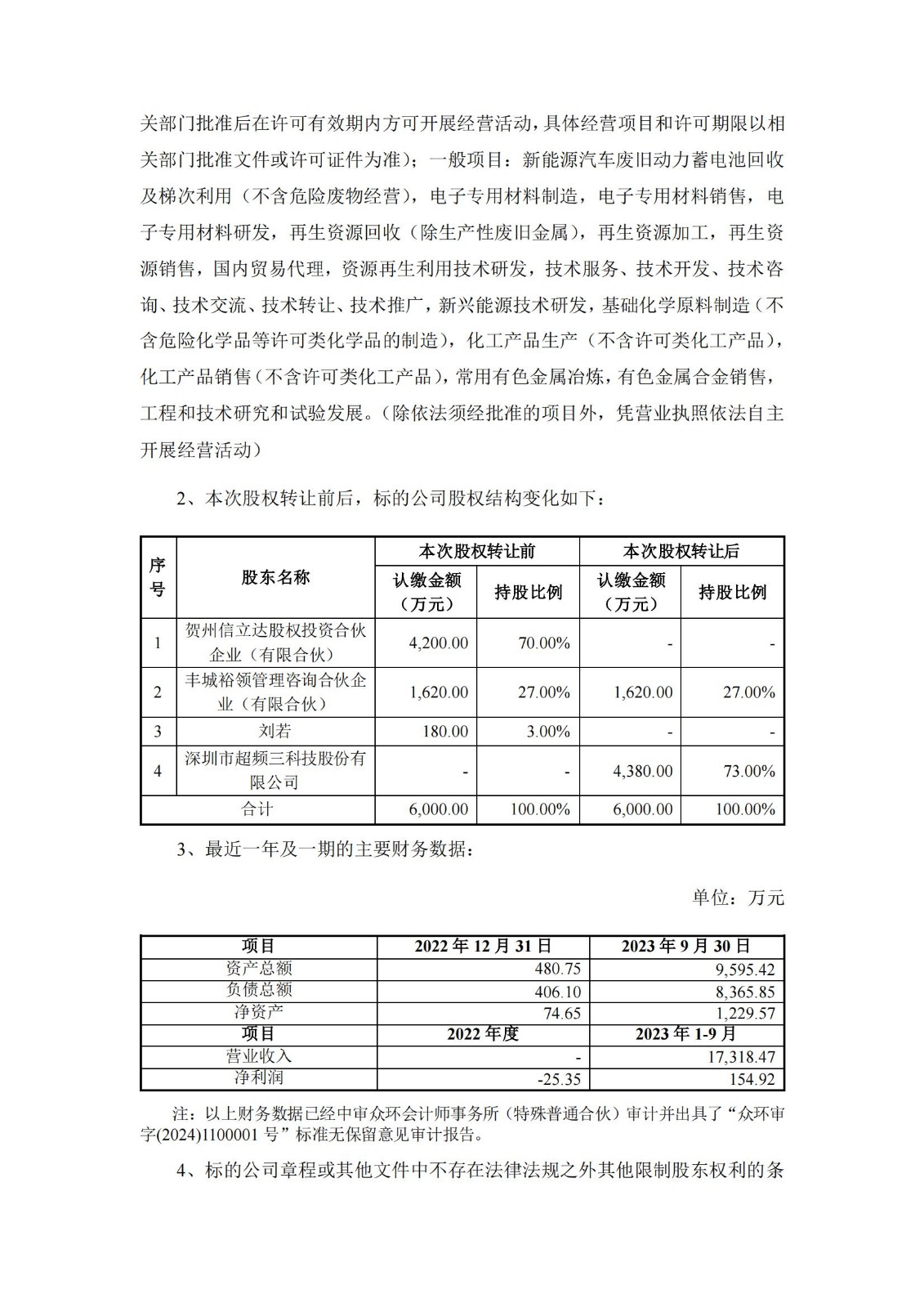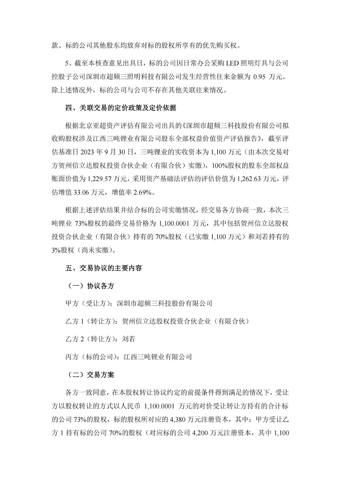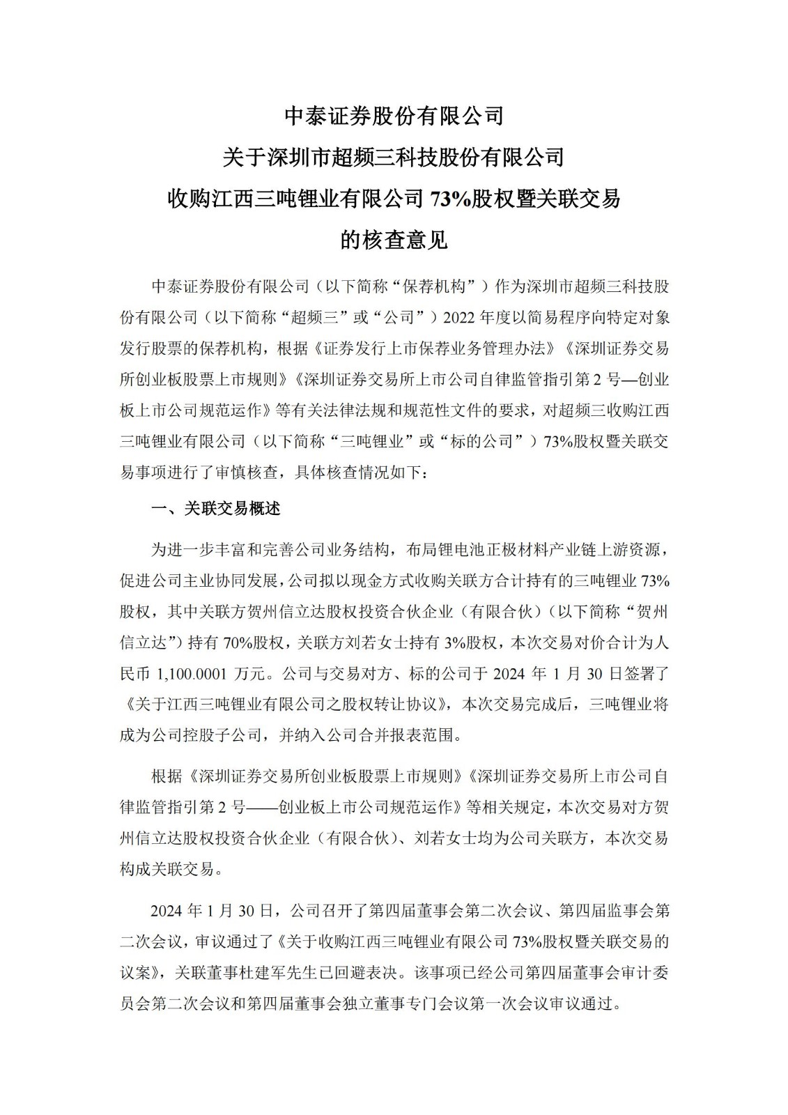 国际能源网获悉,1月30日,超频三发布公告称,拟以1100万元收购关联方合计持有的江西三吨锂业有限公司73%股权,本次交易完成后,三吨锂业将成为公司控股子公司,并纳入公司合并报表范围。