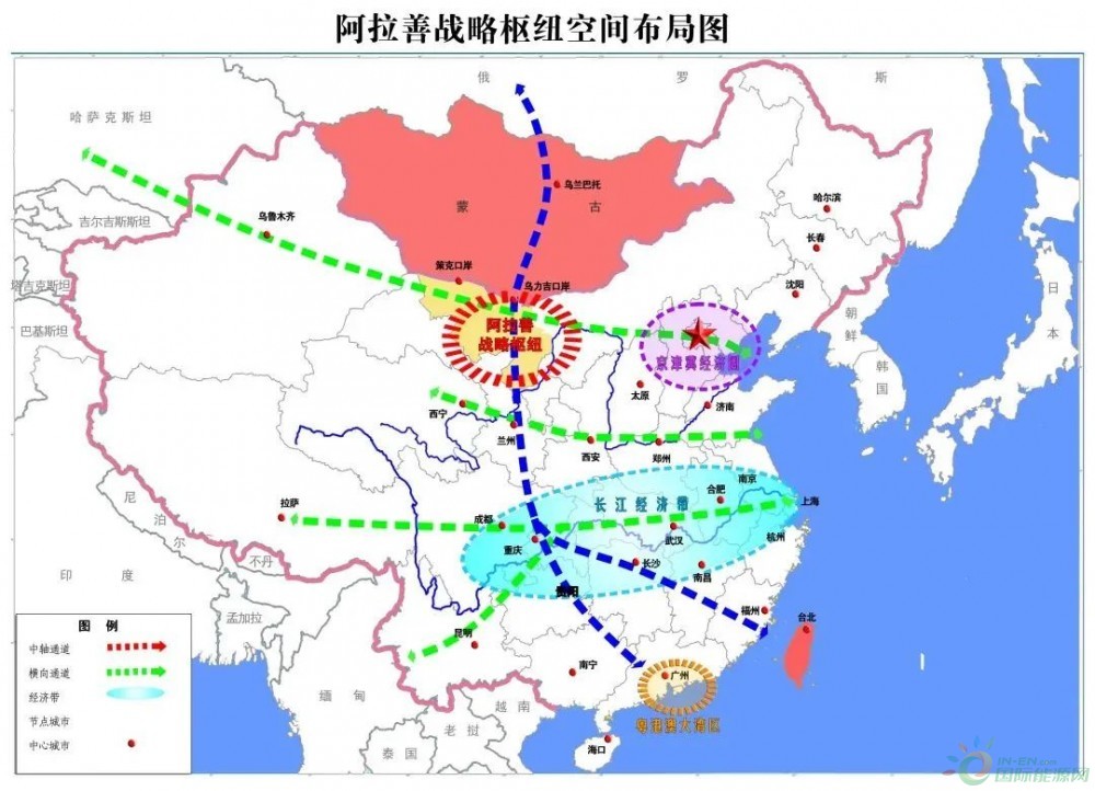 阿拉善盟在放大能源和战略资源“七大优势”的基础上,进一步提出以“两区一基地”建设(零碳示范区、区域协作区、新能源基地)为抓手,着力打造亿千瓦级新能源基地,作为服务区内合作、中蒙合作、蒙甘宁合作、成渝合作及蒙苏(鄂)合作等清洁能源输送基地,重点围绕纳入国家规划大型风电光伏基地,在北线(边境沿线、塔木素、乌力吉、阿拉腾敖包)、南线(河西走廊清洁能源基地、阿右旗、额济纳旗、腾格里沙漠)和东线(黄河几字湾清洁能源基地、贺兰山生态治理区)规划布局新能源。