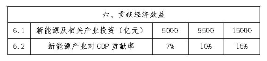 ——效益倍增。到2025年底,新能源电站及相关产业链累计带动投资9500亿元以上,GDP贡献占比超过10%,替代火电节约标煤超过0.9亿吨,减少二氧化碳排放超过1.6亿吨;到2030年,新能源电站及相关产业链累计带动投资15000亿元以上,GDP贡献占比超过15%,替代火电节约标煤超过1.8亿吨,减少二氧化碳排放超过3.1亿吨。