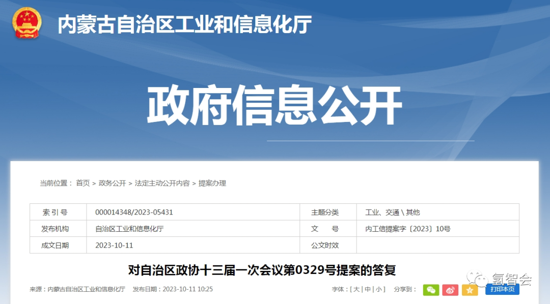内蒙古自治区工信厅近日在对政协十三届一次会议第0329号提案的答复中提到,将充分发挥政府对氢能产业中清洁能源制氢、氢储运、氢加注、氢燃料电堆等产业项目的支持力度。