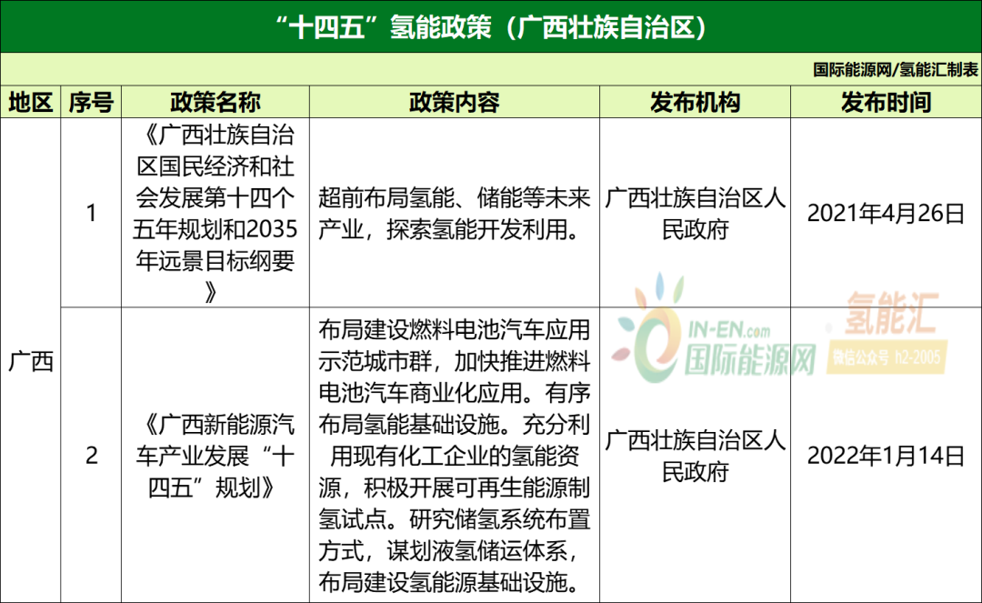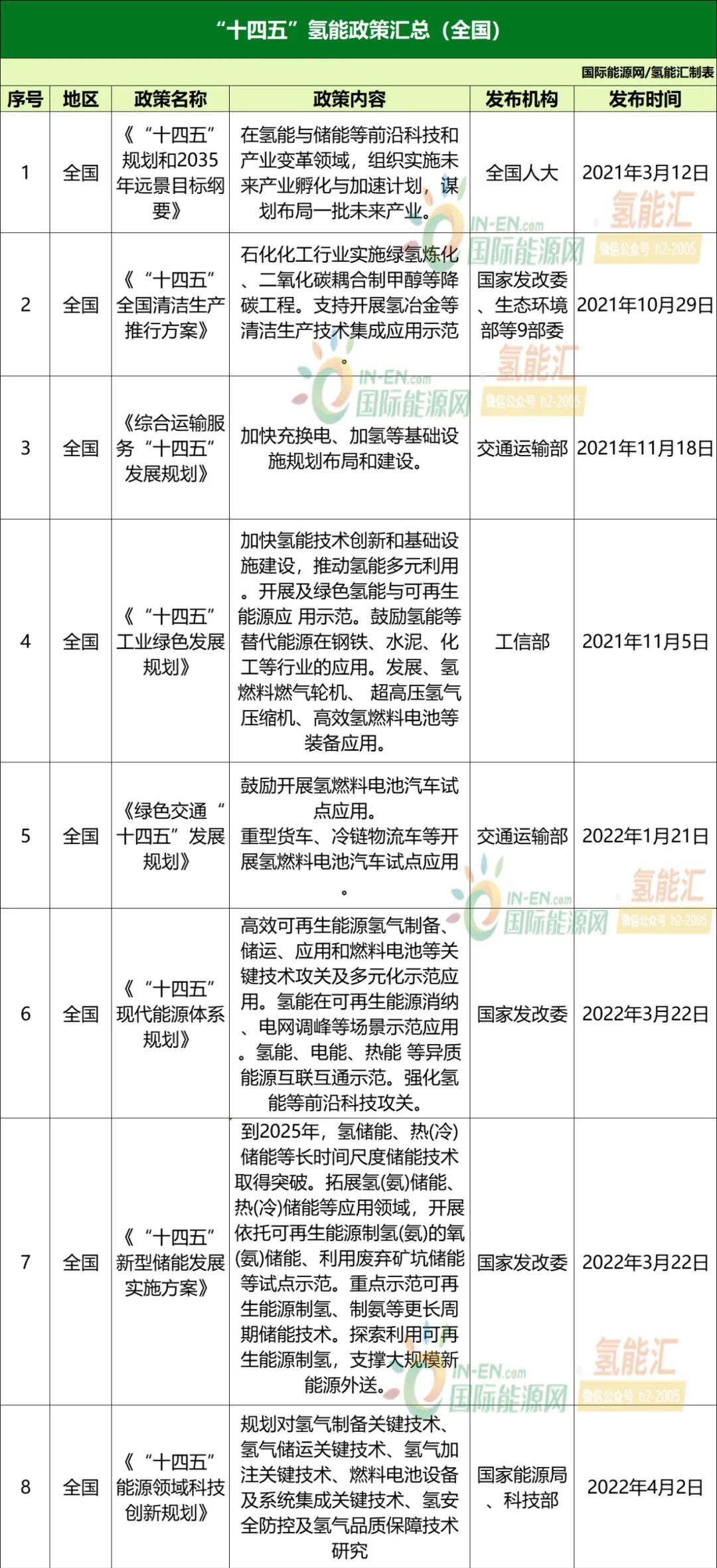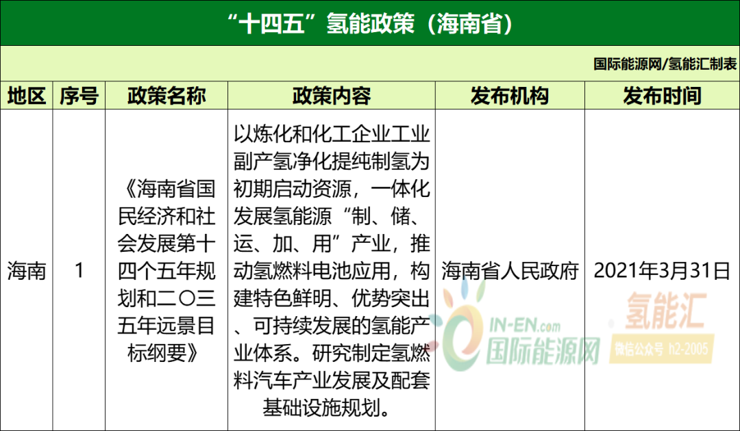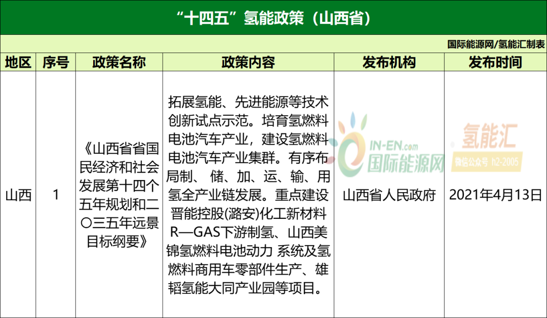 国际能源网/氢能汇(微信公众号:h2-2005)认为,全国多项“十四五”规划政策涉及氢能,说明氢能作为一种能源形式正在走向多元化应用的空间。