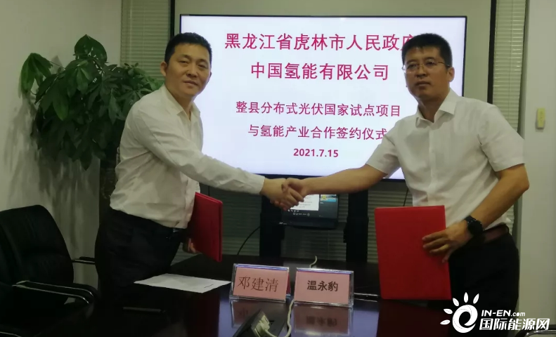 2021年7月15日,虎林市委副书记、市长温永豹,带领市投促局、发改局主要负责人赴中国氢能有限公司,与企业董事长邓建清进行会谈。双方就全国屋顶分布式光伏开发试点项目进行了深入交流,并签署了合作协议。
