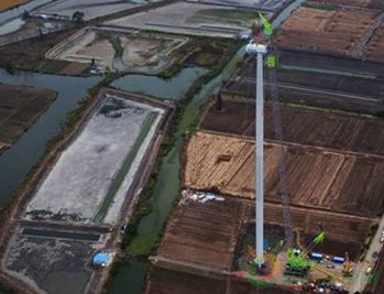 目前,ZCC8800W正在深能高邮东部100MW风电场项目施工,该项目位于高邮市三垛镇和甘垛镇,总装机容量100MW,拟安装50台2MW等级风力发电机组。项目建成后,年上网发电量约18122.4万kWh,可节约标煤约58101吨,减少二氧化硫886.9 吨,氮氧化合物577.4吨,烟尘235.3吨,减轻排放温室效应性气体二氧化碳181009.1吨。