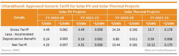 北阿坎德邦电力监管委员会(UERC)宣布了将于2022-23财年投入使用的太阳能、太阳能热能、电网互动屋顶和小型太阳能项目的通用电价。
