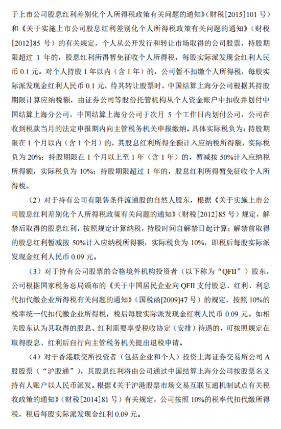 公司本次利润分配实施时股本总数为977,095,932股,扣除公司回购专用证券账户中股份数6,969,724股后的股本970,126,208股为基数,以此计算合计派发现金红利97,012,620.80元(含税)。