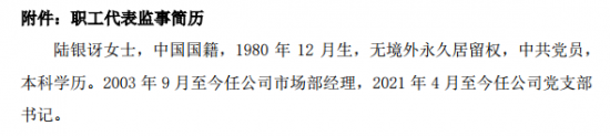 陆银讶女士将与经公司2024年第二次临时股东大会选举通过的两名非职工代表监事共同组成公司第五届监事会,任期与第五届监事会一致。