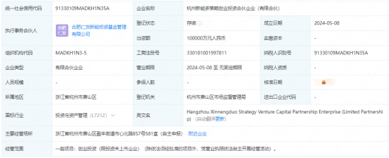 国际能源网获悉,5月8日,杭州新能多策略创业投资合伙企业(有限合伙)成立,执行事务合伙人为合肥仁发新能投资基金管理有限公司,出资额10亿。