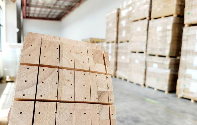 5月29日,记者探访明阳集团东方智能制造基地。图为制造海上风机超大型叶片主要材料之一的轻质木材巴沙木。 中新社记者 王晓斌 摄