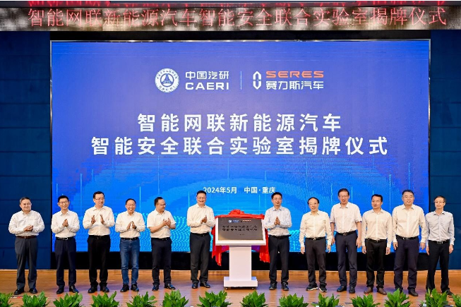 5月25日,赛力斯汽车与中国汽研“智能网联新能源汽车智能安全联合实验室”揭牌仪式在重庆举行。重庆市人民政府参事周青、重庆市人民政府副秘书长全伟、重庆市科技局局长明炬、重庆市经信委副主任涂兴永、中国中检副总经理万鑫铭、赛力斯集团董事长(创始人)张兴海,中国汽研董事长周玉林及双方代表人员共同出席见证本次活动。