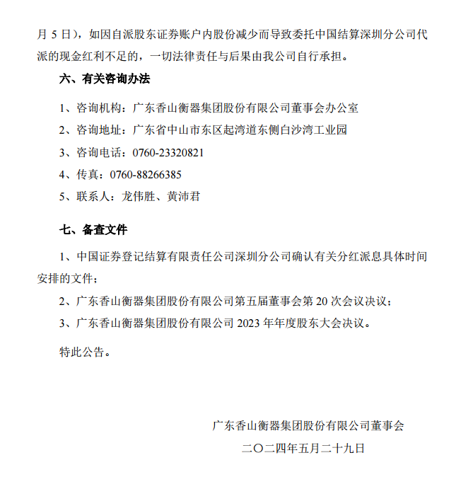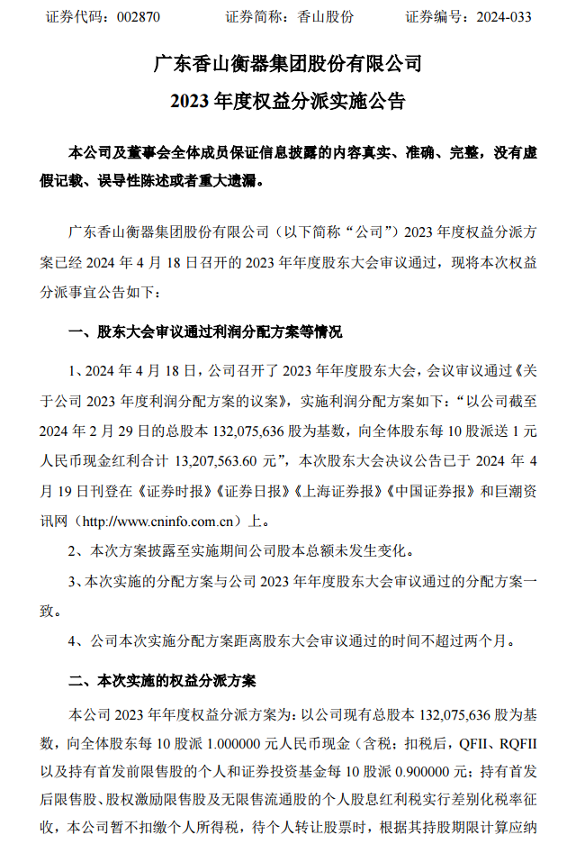 国际能源网获悉,5月29日,香山股份发布2023年度权益分派实施公告。