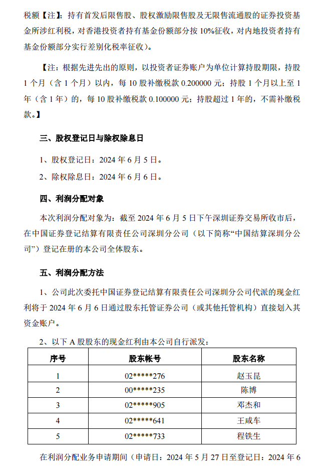 公告称,2024年4月18日,公司召开了2023年年度股东大会,会议审议通过《关于公司2023年度利润分配方案的议案》,实施利润分配方案如下:“以公司截至2024年2月29日的总股本132,075,636股为基数,向全体股东每10股派送1元人民币现金红利合计13,207,563.60元”。