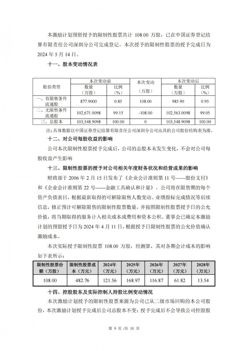 本激励计划预留授予的限制性股票共计108.00万股,已在中国证券登记结算有限责任公司深圳分公司完成登记。