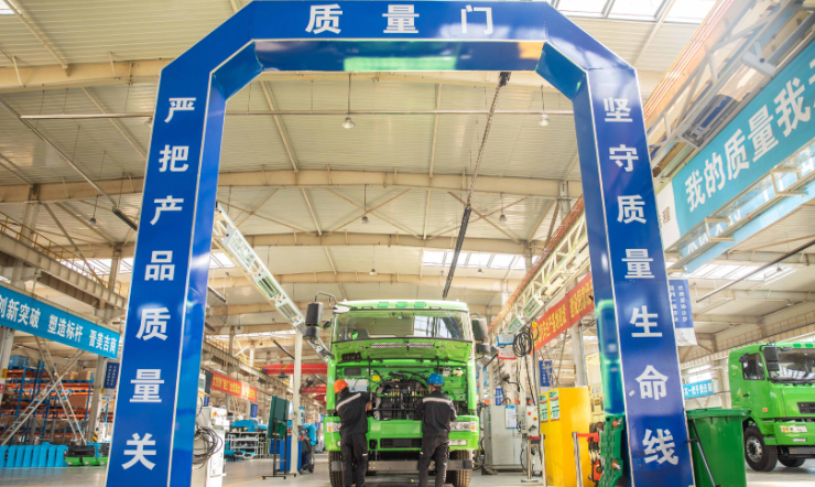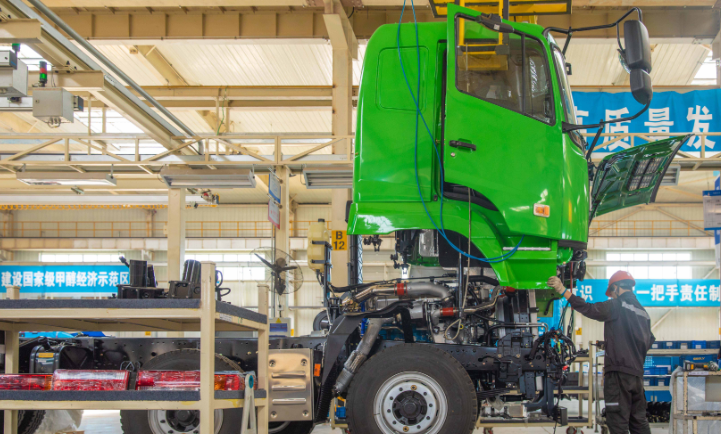 一辆甲醇重卡即将下线。