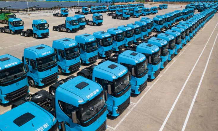 投产下线的甲醇重卡车队。
