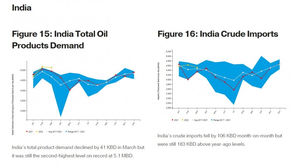 而原油需求大国印度截至今年三月的总需求水平,以及总进口量均处于历史高位附近,其中总需求为有记录以来第二高。另一原油需求大国日本的原油进口量在3月创下23个月以来新高。