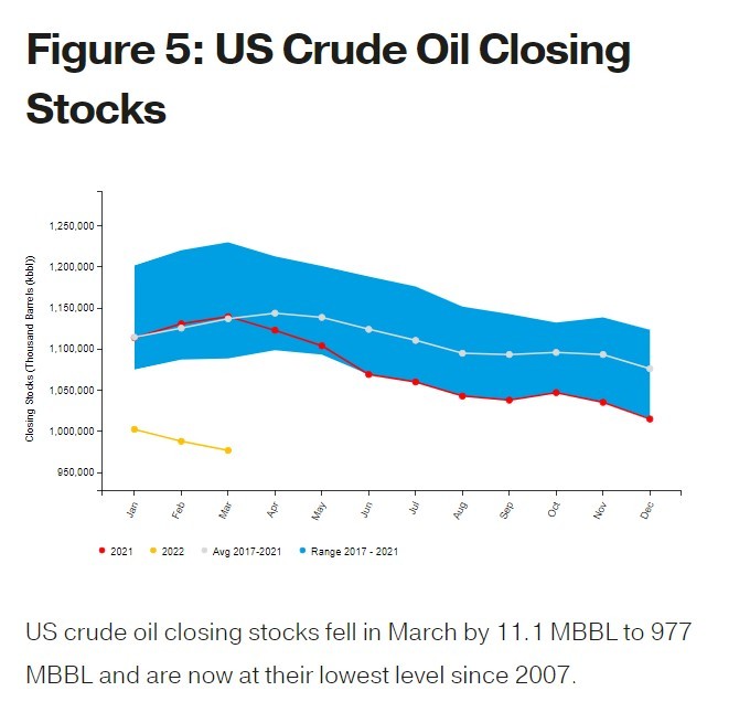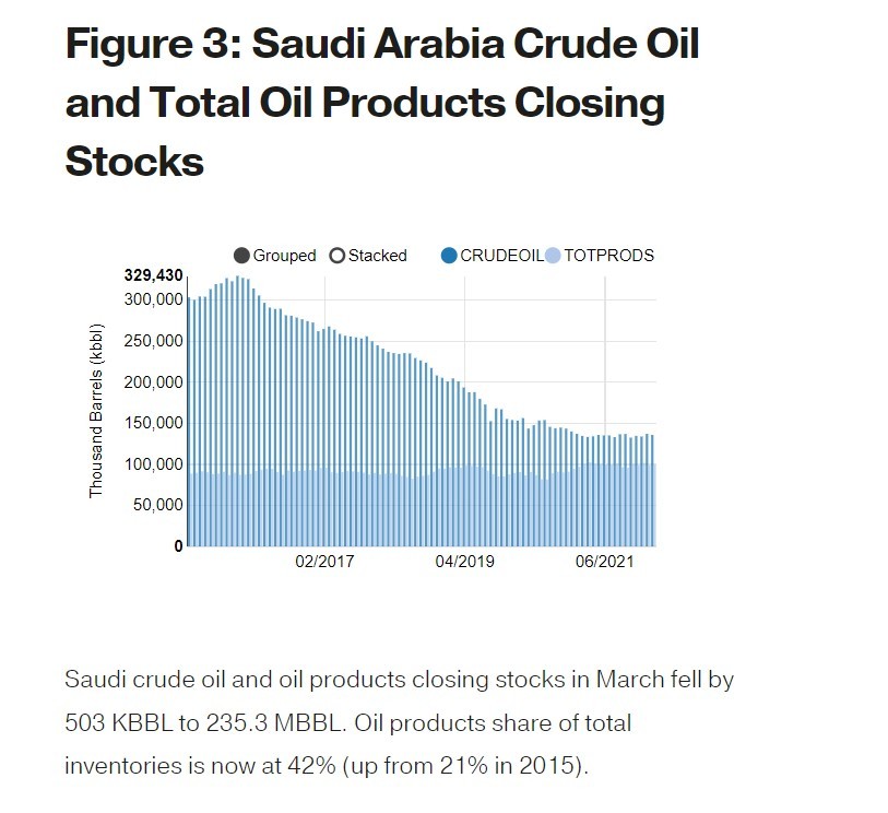 能源数据平台JodiOil公布的最新统计数据显示,截至3月底,美国原油期末库存已降至2007年以来的最低水平,欧佩克核心成员沙特阿拉伯原油库存目前也处于较低水平。