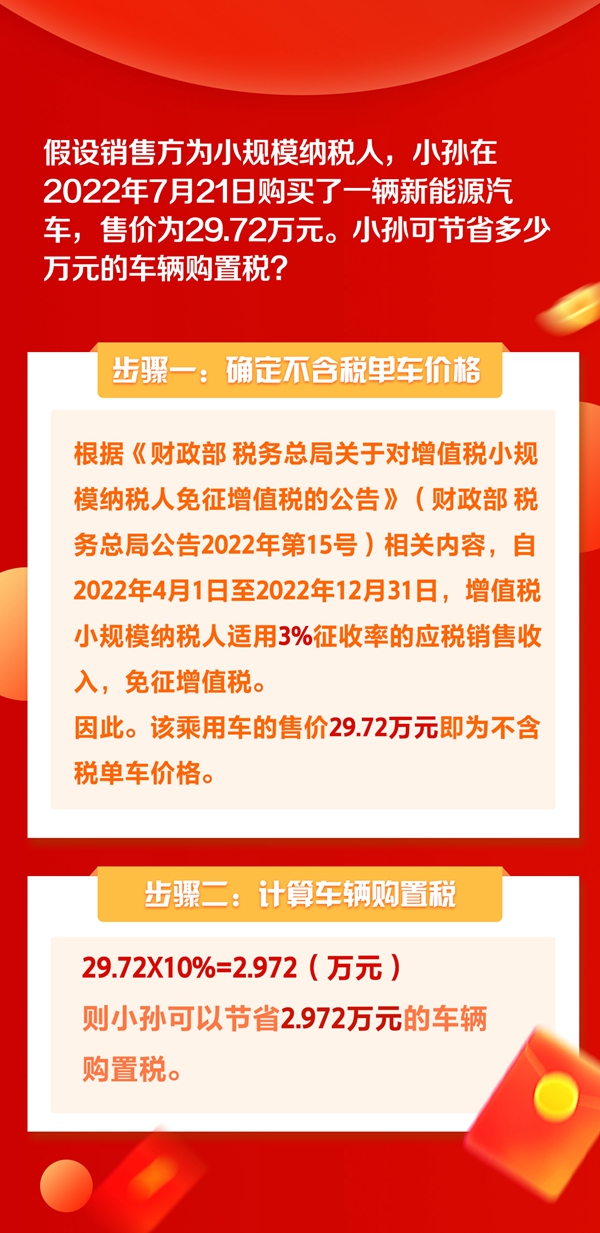 值得注意的是,适用新能源车辆范围为免征车辆购置税的新能源汽车,通过工业和信息化部、税务总局发布《免征车辆购置税的新能源汽车车型目录》实施管理。具体可登录国家税务总局官网进行查询。购置时间为机动车销售统一发票(或有效凭证)上注明的日期。