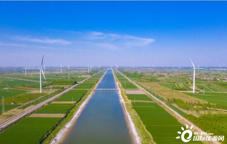 初夏,庆云广袤大地上,风吹白云飘,高大的风车星罗棋布,风轮叶片缓缓转动,低碳的电能通过输电线路源源不断送入国家电网或储能电站。