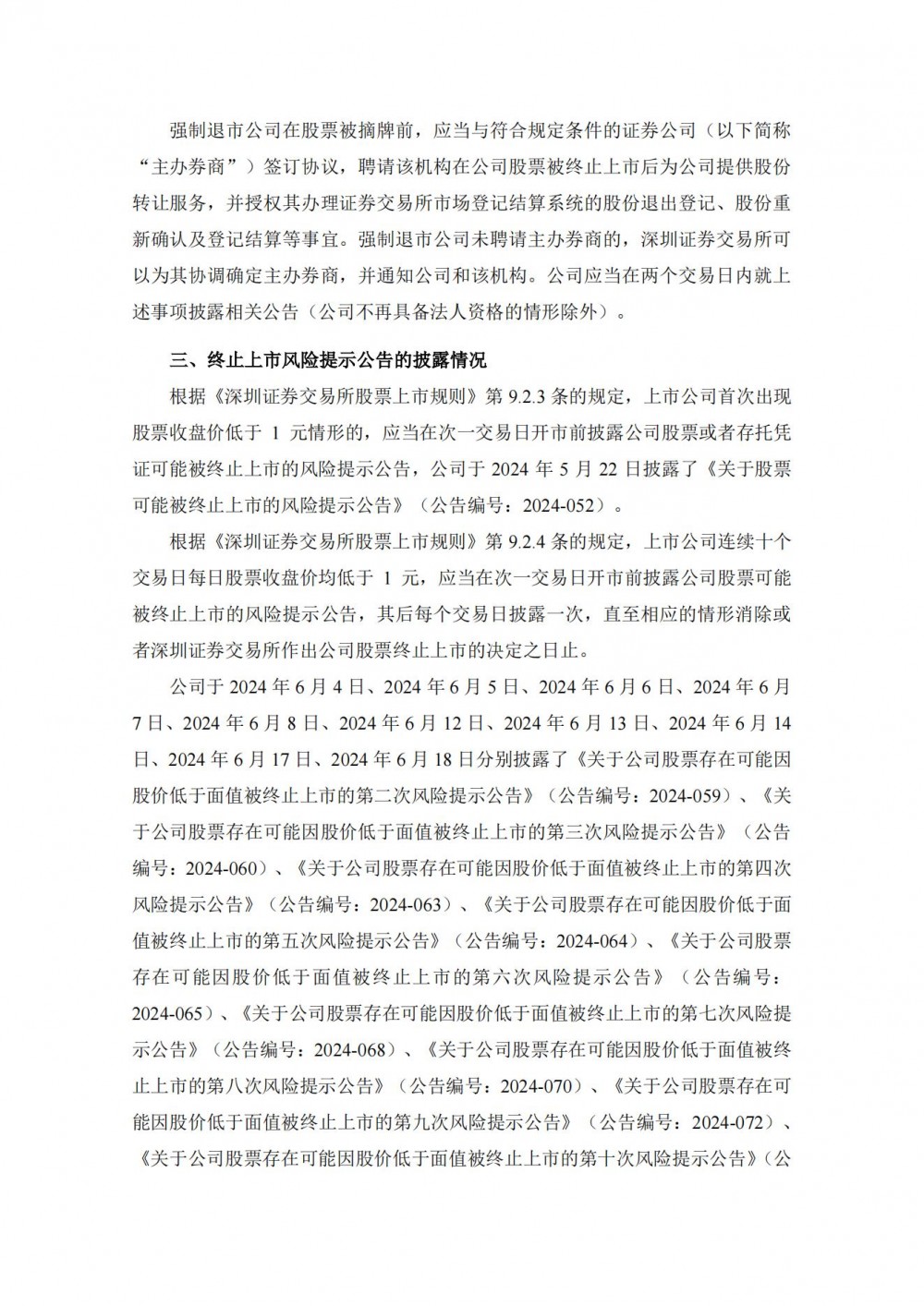 根据《深圳证券交易所股票上市规则》第9.2.6条的规定,公司股票将自2024年6月19日(星期三)开市起停牌。