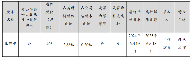 6月22日,赣锋锂业发布公告称,公司于近日接到公司股东王晓申先生将其持有的公司部分股份补充质押的通知,具体情况如下: