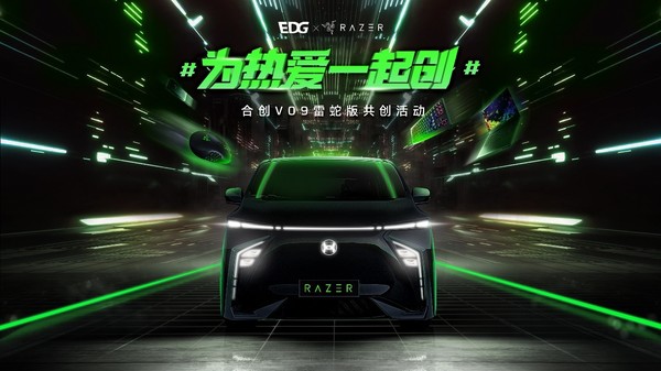去年的广州车展上,合创汽车同步宣布联手全球顶级电竞外设品牌雷蛇与EDG跨界共创合创V09雷蛇版,创造性打造行业首台“移动电竞堡垒”。三方还以“为热爱一起创”的主题,邀请广大用户参与项目设计开发当中,亲手“筑造”心中最佳的“移动电竞堡垒”。