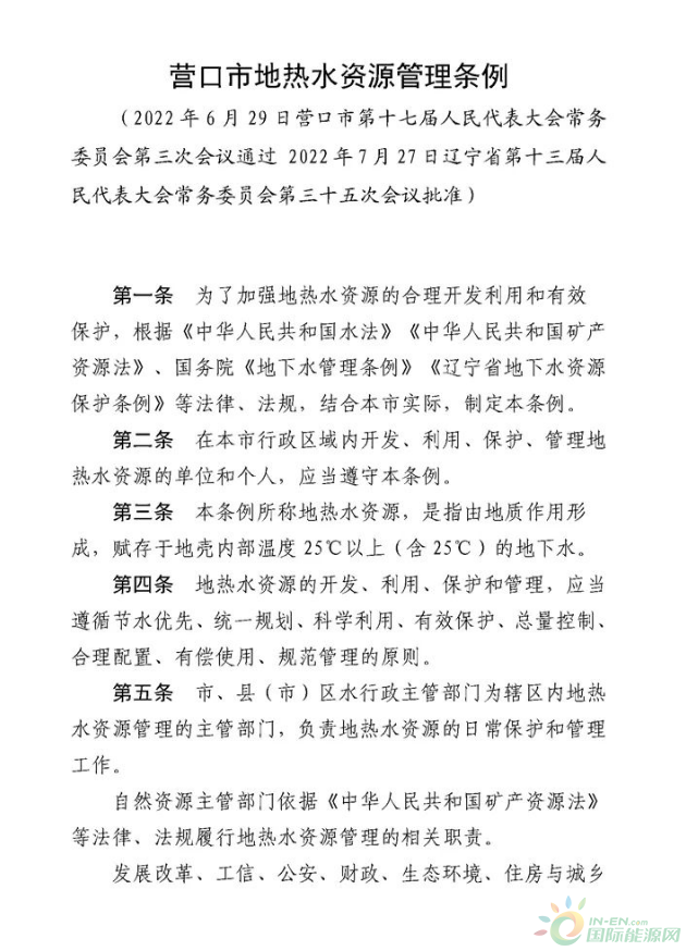 “以后,我们营口市地热水资源管理有了地方性法规,水政执法有法可依,有章可循。”孙海波说。