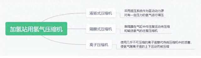 加氢站主要分为制氢加氢一体站、固定式加氢站和撬装加氢站,隔膜式压缩机主要适用于制加氢一体站与固定式加氢站,而液驱式压缩机体积小,更加适用于撬装加氢站。目前国内加氢站较多采用的是液驱式压缩机、隔膜式压缩机。